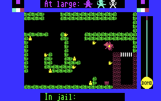 SuperTed’s gameplay revolves around navigating the winding corridors of Creepy Castle in a race against the clock. You’ll guide the titular hero through maze-like levels, seeking out Texas Pete, Bulk, and Skeleton one by one. Each villain must be captured and escorted back to jail before time runs out, keeping you on your toes as the timer ticks ominously in the corner of the screen.