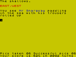 Structurally, Terrormolinos mirrors the ebb and flow of a real vacation. Day trips to nearby towns and attractions provide fresh backdrops for your photos, along with new encounters that range from charming to outright perilous. The parser-driven interface (VERB NOUN) keeps interactions brisk and puzzle-focused; you’ll find yourself typing commands like “TAKE PHOTO”, “ASK LOCALS”, or “GET SHADE” to navigate both minor squabbles and major calamities. It’s an exercise in efficient problem-solving that keeps the tension high and the laughs coming.