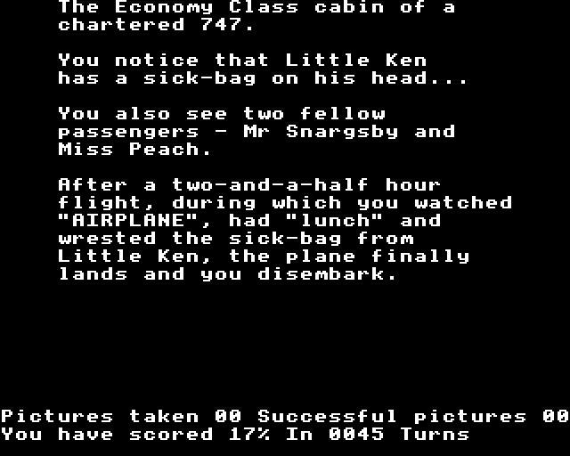 Ultimately, Terrormolinos is a charming throwback to an era when imagination powered the adventure. It’s not for those seeking modern graphics or action-packed set pieces—but if you’re drawn to witty writing, inventive puzzles, and the sheer joy of guiding a befuddled family through holiday hell, this vintage Melbourne House title still has plenty to offer.