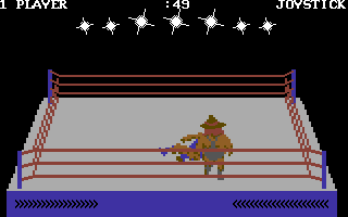 Given their late-’80s origins, the four games in The Action Pack share a nostalgic blocky look, but each title brings its own color palette and visual flair. Bop’N Wrestle employs large sprite characters with exaggerated limbs, giving matches a comedic yet readable style. The wrestling ring backdrop is simple but uses bright primary colors to convey crowd excitement.