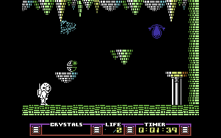 The user interface remains unobtrusive: a small status bar displays your remaining crystals and lives without intruding on the play area. Pop-up notifications for crystal collection or damage are clear and immediate, ensuring you’re always aware of your objectives and peril. In combining atmospheric backdrops with well-crafted animations, The Arc of Yesod delivers a presentation that both respects its roots and stands out on vintage hardware.