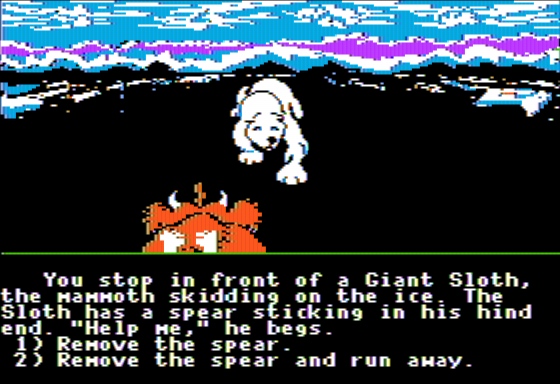 The user interface is straightforward, displaying clear text prompts and simple choice menus. While it may lack the more modern quality-of-life features like undo buttons or detailed inventories, its minimalism keeps the focus on story and decision-making. This design choice makes The Cave of Time accessible to younger players while still engaging for older fans of classic interactive fiction.