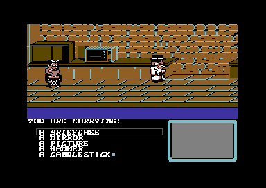 Interactivity hinges on a concise six-command menu, accessed with the simple press of the Fire button on your joystick. Whether you’re examining an odd trinket, manipulating a suspect’s personal effects, or checking the mansion clock for the next grim incident, each command feels purposeful. This streamlined interface keeps the flow brisk and immersive, challenging you to piece together fragments of information without being bogged down by cumbersome controls.