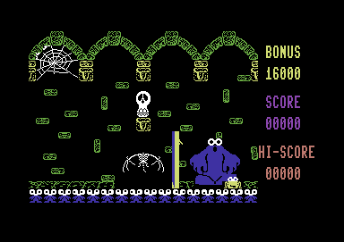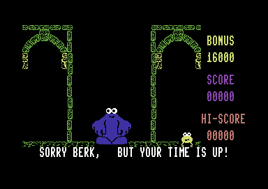 The Commodore 64 visuals in Through the Trap Door showcase an impressive blend of colorful sprites and dark, brooding backgrounds. Each region has its own palette, from gooey green slime caverns to fiery molten cores, lending the game an atmospheric variety that keeps your eyes glued to the screen. Character animations are delightfully exaggerated—watching Drutt scamper or seeing Berk flex in triumph never grows old.