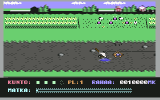 Uuno Turhapuro Muuttaa Maalle delivers a straightforward yet charming side-scrolling platform experience. From the outset, players guide Uuno across various rural backdrops, timing jumps and interactions precisely. The left-to-right scroll keeps the pace steady and encourages forward momentum, making each section feel like a continuous journey rather than isolated mini-games.