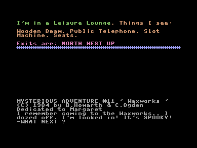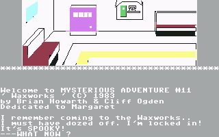 Waxworks stands as a fitting finale to the Mysterious Adventures series, showcasing the evolution of interactive fiction at a time when parsers were becoming more sophisticated. Its improved sentence‐based input makes the game accessible to newcomers, while the intricate puzzles and atmospheric writing satisfy seasoned adventurers. Even decades after its release, it remains a testament to the power of words and imagination in crafting unforgettable gaming experiences.