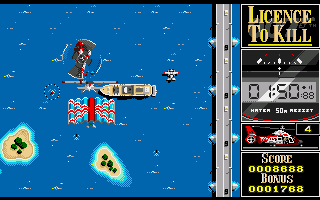 007: Licence to Kill delivers a straightforward yet engaging arcade-style experience that faithfully captures the high-octane spirit of James Bond. Across its six levels, players alternate between walking, driving, and piloting missions, all presented through vertically scrolling stages. Each segment challenges you to shoot down waves of Sanchez’s henchmen, dodge incoming fire, and collect ammunition crates to keep Bond’s weapons primed for action.