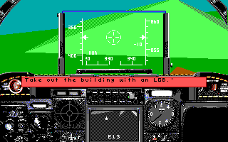 By modern standards, A-10 Tank Killer’s visuals are undeniably dated, relying on 2D sprites and pixelated terrain rendering that harken back to the early ’90s era of flight simulators. However, for its time, the game delivered a remarkably clear and functional flight environment. Cockpit instruments are well-drawn and readable, with every dial and gauge serving a purpose in the heat of combat. The HUD overlays are crisp, keeping you informed on altitude, speed, heading, and weapons status at a glance.