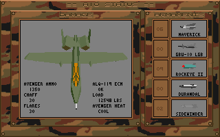While hardcore sim fans might lament the lack of texture mapping or polygonal terrain, A-10 Tank Killer’s graphics never interfere with gameplay clarity. If anything, the straightforward art style keeps the focus on mission planning and execution, rather than flashy visual flourishes. For players in 1991, the game struck a fair balance between visual appeal and functional design.