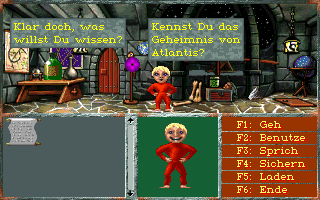 Abenteuer Atlantis follows a classic point-and-click adventure structure, inviting players to explore intricately designed rooms in search of useful objects. As Knorrli, you’ll move through ancient Mesopotamian villages, lairs of looming threats, and eventually the mythical ruins of Atlantis itself. Interaction is straightforward: click to walk, use, or speak, streamlining the experience for both newcomers and veteran adventure fans.
