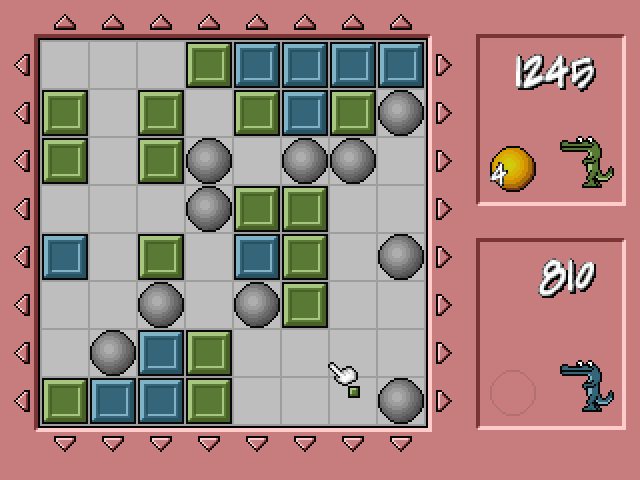 Alex the Allegator 2 brings a refreshing twist to the classic Othello-style formula by introducing both tile placement and board manipulation mechanics. On each turn, you can either place one of your colored tiles on the 8×8 grid or slide an entire row or column by one space. This dual-option system adds a layer of tactical choice that keeps every move engaging, as players must weigh the benefits of scoring now versus setting up future opportunities.