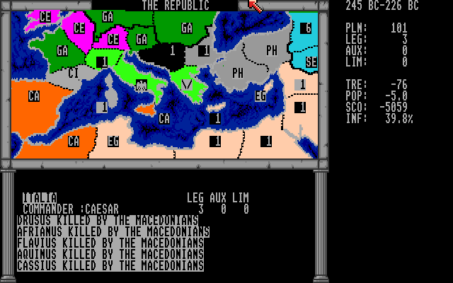 Annals of Rome places you squarely in the halls of power as a Roman senator, tasked with expanding your dominion from 273 BC onward. Each turn unfolds in a series of well-defined phases, beginning with economic calculations for population growth and tax revenue. Managing these resources carefully is crucial—low taxation keeps public morale high, but if you overextend your military campaigns without sufficient funds, rebellions can spark and your armies may falter on distant fronts.