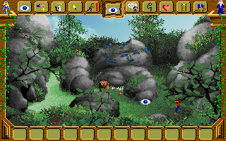 Perhaps the most distinctive feature of the gameplay is the dual-control scheme. Enthusiasts of text parsers can type commands to interact with the world, while point & click purists navigate via a multi-tiered icon bar. You’ll find the usual “take” and “look” icons alongside more unusual ones like “kiss” or “eat,” as well as operational tools for saving or loading. Switching between or combining both control methods offers a uniquely flexible experience, allowing you to tailor interactions to your personal playstyle.