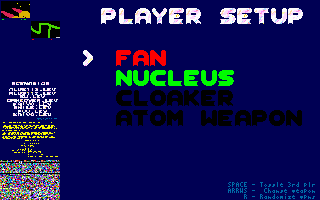 AUTS: The Ultimate Stress Relief Game specializes in fast-paced, split-screen action for two to four players. Each participant pilots a nimble V-shaped spaceship through winding caverns rendered in bitmap style, relying on quick reflexes to outmaneuver opponents. The core loop is simple: dodge incoming fire, collect power-ups, and blast rivals to smithereens.