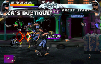 Batman Forever embraces the classic side-scrolling beat ’em-up formula popularized by titles like Final Fight and Double Dragon, but injects it with the dark flair of Gotham’s Caped Crusader. Players can choose between Batman and Robin, each boasting unique move sets that blend martial arts strikes with iconic gadgets. The core combat loop revolves around chaining punches, kicks, and weapon attacks into satisfying combos, with the ability to improvise on the fly to keep enemies off‐balance.