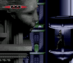 Backgrounds showcase a moody Gotham City palette, with dark alleyways, neon-lit rooftops, and the eerie glow of Gothic architecture. Each level has its own color scheme and visual flourishes—lounging gargoyles, flickering street lamps, and the occasional Vincent Price–style gargoyle statue—helping to create a consistent atmosphere. While the environments can sometimes feel static, subtle animations such as drifting fog or flickering lights add life to the stages.