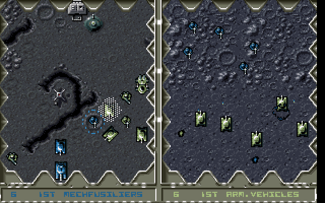 Graphically, The Moon of Chromos feels like a natural upgrade to the original Battle Isle palette. The lunar surface is rendered in icy grays and muted blues that contrast sharply with the bright red and blue of opposing forces. While still built on the mid-’90s pixel art engine, the expansion’s new tilesets—craters, frozen lakes, and dark sky backgrounds—create a convincing lunar atmosphere.
