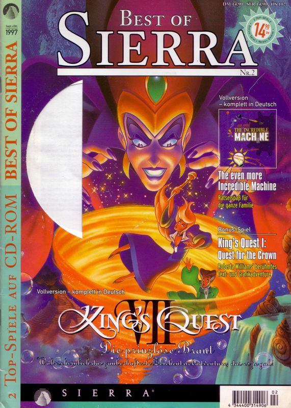 Best of Sierra Nr. 2 delivers a diverse gameplay experience by bundling two full games—King’s Quest VII: The Princeless Bride and The Even More! Incredible Machine—alongside a remake of King’s Quest I and three sizeable demos. King’s Quest VII offers classic point-and-click adventure mechanics: you explore beautifully hand-painted environments, interact with quirky NPCs, and solve inventory-based puzzles that grow in complexity as you progress. Its intuitive interface and well-paced puzzle difficulty make it accessible to series veterans and newcomers alike.