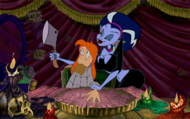 Upon release, Brain Dead 13’s animation stood out for its high-resolution, hand-drawn FMV sequences. The game feels more like a cartoon horror film than pixel-based software. Characters move fluidly, and environmental details—dripping torches, rattling chains, and shifting shadows—help establish the castle’s spooky atmosphere. Each fatal mistake is rendered with comical flair, blending slapstick and horror to create memorable gory gags.