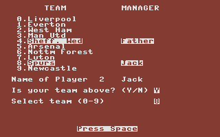 The color palette is restrained but effective: team kits are distinguished by bright blocks of color, while pitch diagrams use clear lines to show formations and tactical adjustments. Menu navigation feels intuitive, with logical grouping of club finances, squad details, and upcoming fixtures. While modern gamers used to high-end visuals might find it dated, the graphics serve their purpose admirably, providing all the data you need at a glance.