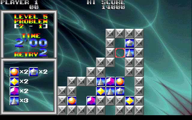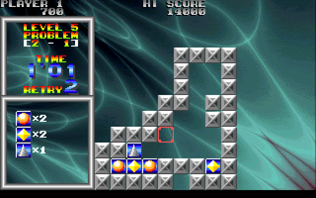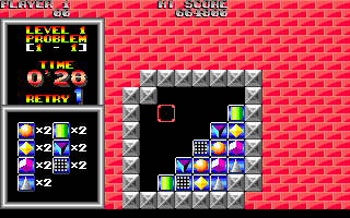 Brix takes its inspiration almost wholesale from Taito’s classic Puzznic, offering block-matching puzzles where timing and spatial reasoning are everything. You’re presented with a fixed grid of colored, shape-decorated bricks, and your only control is the ability to slide individual pieces left or right. When two or more identical bricks touch, they vanish, and gravity pulls the remaining blocks down to fill the gaps. This simple mechanic quickly reveals layers of depth as you juggle multiple shapes and plan chain reactions.