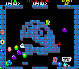 What truly elevates the story is the multiple-ending structure. A solo run culminates in a “bad” ending urging you to try again with a friend, while a cooperative 2-player victory rewards you with the “good” ending of rescued companions. Inputting a secret code to access Super Bubble Bobble unveils a remixed monster roster and, upon completion, grants the “true” ending—an early example of encouraging players to explore every corner of a game world.