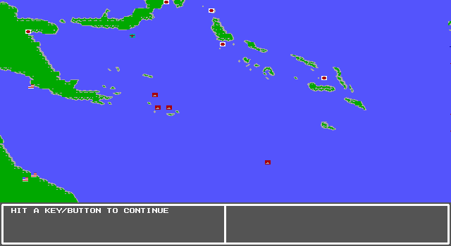 The visual presentation of Carrier Strike is functional rather than flashy, emphasizing clarity over cinematic frills. The hex‐based map displays at-sea grid coordinates, color‐coded islands, and search patterns in a style reminiscent of classic board wargames. Ships and aircraft appear as counters with distinct silhouettes, making it easy to distinguish carriers, battleships, cruisers, and various aircraft types at a glance.