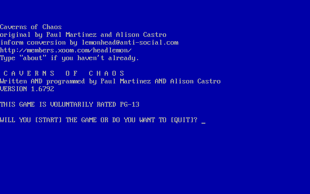 Ultimately, Caverns of Chaos isn’t for everyone—its retro pace and text-only interface demand patience and dedication. But for aficionados of classic interactive fiction or anyone curious about the roots of adventure gaming, it offers a uniquely satisfying journey. Embrace the chaos, steel your nerves, and prepare for a wild descent into Landloris’s domain. Honour—and a hefty reward—awaits those bold enough to see it through.
