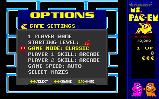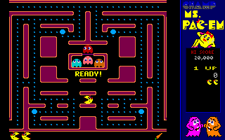 Switching to Champ mode elevates the experience with fresh level layouts, novel bonus items, and a slightly ramped-up difficulty curve. This enhanced mode appeals to veteran players seeking new thrills beyond the standard Ms. Pac-Man formula. While the basic premise—navigate the labyrinth, clear all pellets, and avoid those colorful ghosts—remains unchanged, the added surprises in Champ mode keep each run feeling unpredictable.