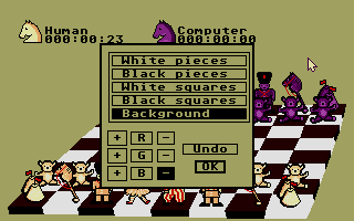 Visually, Chess Player 2150 strikes a nice balance between clarity and charm. Its default 2D board presents crisp, easily distinguishable squares and pieces—even on lower-resolution Amiga or PC screens. If you prefer a more modern feel, the optional 3D view rotates the board in perspective, adding depth without sacrificing readability.
