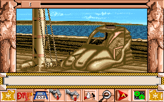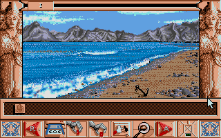 Chrono Quest II streamlines its adventure mechanics with a fully icon-driven interface that replaces the text-and-icons hybrid of the first installment. A neatly arranged toolbar along the bottom of the screen provides quick access to movement arrows, “get,” “give,” “examine,” and other essential actions, making navigation and object interaction feel intuitive. This shift not only lowers the barrier for newcomers to point-and-click adventures but also speeds up puzzle-solving by reducing unnecessary text parsing.