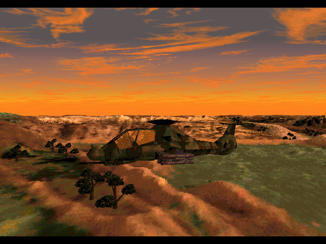 Powered by Novalogic’s VoxelSpace2 engine, Comanche 3 delivers sweeping watercolor-style landscapes that remain surprisingly lively and detailed even at long draw distances. From lush jungle canopies and rocky mountain passes to vast sand dunes stretching to the horizon, each environment feels expansive and immersive. The voxel technology creates a soft, almost painterly aesthetic that helps maintain high frame rates, even on modest hardware.