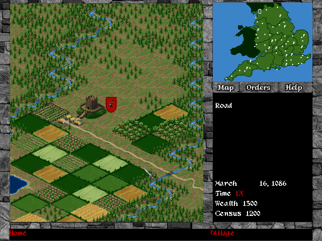 Running in SVGA resolution, Conqueror: A.D. 1086 offers detailed, hand-drawn sprites and richly textured terrain. The isometric vantage point feels both nostalgic and functional, giving you a clear overview of your holdings while showcasing rolling hills, timbered buildings, and meandering rivers. Zooming in on individual units reveals surprisingly fluid animations for the era, from swinging halberds to tumbling horses in jousts.