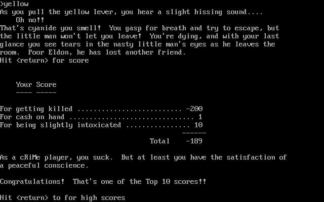 Ultimately, cRiMe stands as a testament to the enduring appeal of interactive fiction. It proves that a well-crafted premise, sharp writing, and tight gameplay loops can create an experience that lingers long after you’ve closed the window. For fans of high-intensity, minimalist adventures, cRiMe is a must-try digital underworld excursion.