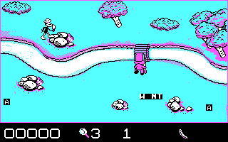 Adding spice to the letter-collecting routine are classic Looney Tunes adversaries such as Elmer Fudd, Sylvester J. Pussycat, Yosemite Sam, and Wile E. Coyote. These foes patrol the screens, ready to send Daffy back to the start if they collide. Fortunately, Daffy can defend himself using playful weapons like bananas and eggs, stunning enemies just long enough to complete a tricky word. This mild combat sequence introduces an element of timing and quick reflexes, giving the game a subtle action twist without overwhelming its educational focus.