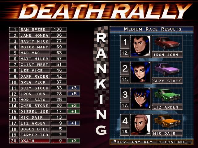 Death Rally thrives on a simple yet deeply strategic racing loop that combines speed, weaponry, and opportunistic tactics. You start with a humble $495 and a beat-up car, but even in this early stage you’re encouraged to think beyond flooring the accelerator. Each race invites you to balance aggressive driving with well-timed pickups—whether it’s mines, rocket fuel, or repair kits—to stay ahead of the pack. Learning to deploy these items at the right moment becomes as crucial as mastering the track layouts themselves.