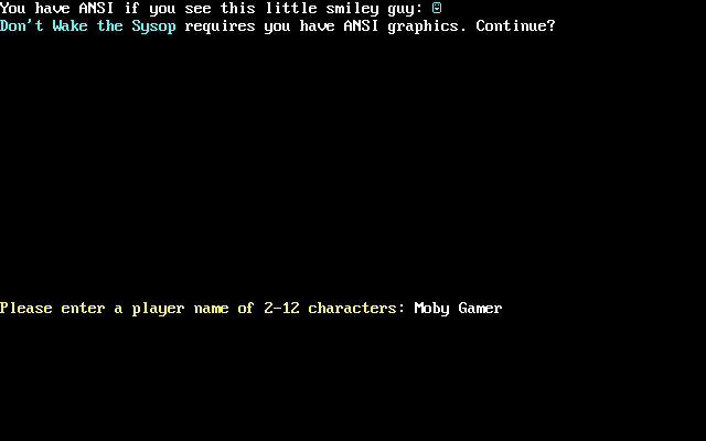 As a classic BBS door game, Don’t Wake the SysOp relies almost entirely on text and simple ANSI graphics rather than modern sprites or polygons. The interface comprises menus, ASCII art flourishes, and occasional color enhancements that would have stood out on the monochrome or low-resolution monitors of the era. While primitive by today’s standards, these visuals carry a strong vintage charm.