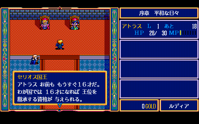 Taking place years after Prince Selios vanquished the demon god Agunija, the tale now centers on his son Atlas, a fifteen-year-old warrior trained by the stalwart Lowel. The game’s opening scenes skillfully set the stage: a kingdom basking in peace is suddenly threatened by mysterious figures donning space suits. Their otherworldly presence immediately raises questions about their origins and intentions.