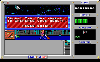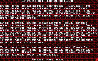 At its core, Duke Nukum: Shrapnel City offers a straightforward yet entertaining storyline: in 1997, the deranged Dr. Proton unleashes an army of mechanical Techbots on Earth, and only Duke Nukum—with his larger-than-life attitude and arsenal of weapons—can stop him. The narrative is delivered primarily through brief level intros and tongue-in-cheek text, capturing the irreverent spirit Duke is known for.