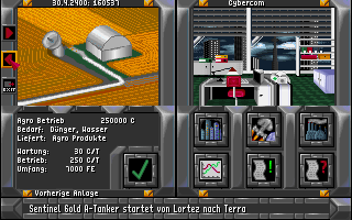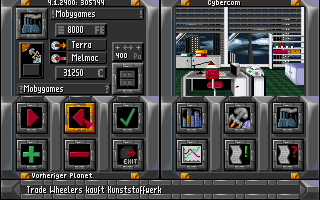 The planetary backdrops, though static, convey a convincing sense of scale and isolation. Each world is depicted with distinct color palettes—sandy deserts, icy tundras, lush jungles—helping you quickly distinguish resource types and regional specializations. Menus and pop-up windows employ a sleek, futuristic design that reinforces Dynatech’s corporate aesthetic without overwhelming the player.
