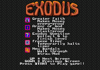 Overall, Exodus: Journey to the Promised Land is a well‐crafted experience that unites faith‐based storytelling with classic gameplay mechanics. Its balance of challenge, educational value, and retro charm makes it a worthy addition to any gamer’s library—especially for those who appreciate a meaningful narrative woven into every pixel and puzzle.