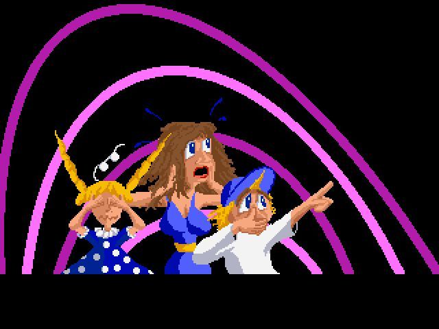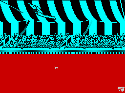 For a late ’80s title, Big Top O’ Fun boasts strikingly colorful graphics that capture the carnival atmosphere. Each act has its own distinct backdrop: a shimmering pool for high diving, a sunlit arena for juggling, and a dimly-lit tent interior for the knife-throwing act. Character sprites are cartoonish yet expressive, with Finola’s flowing hair and Horace’s surprised face when blasted off-course conveying plenty of personality.