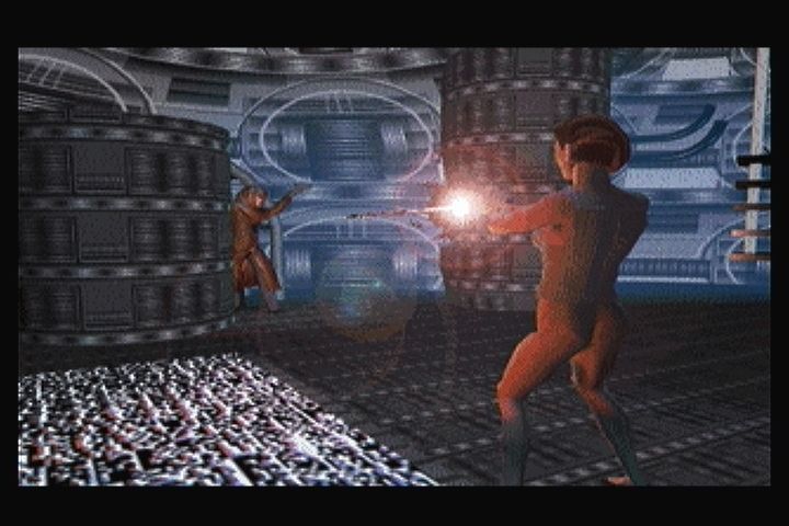 The game’s FMV (full-motion video) sequences stand out as its visual centerpiece. Live-action cut scenes featuring costumed actors against chroma-keyed backdrops lend a distinct ’90s cyberpunk vibe. While the production values reflect the era of CD-ROM adventure games, the atmospheric lighting and practical effects still hold up, creating a visceral sense of dread and intrigue.