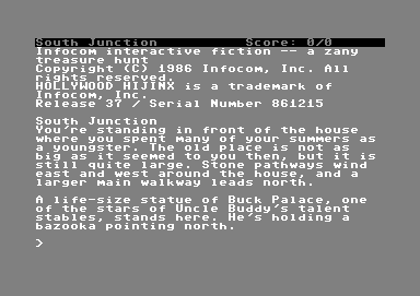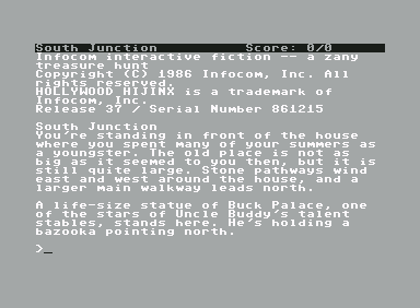 Hollywood Hijinx delivers a classic text-adventure experience, leaning heavily on a robust parser that responds to verb-noun combinations. From simple commands like “open door” to more complex interactions such as “combine lantern with oil,” the game challenges players to think creatively about how to manipulate objects and navigate their surroundings. The inclusion of context-sensitive hints through typed commands like “examine diary” or “read plaque” helps to guide players who might otherwise get stuck in the more obscure puzzles.