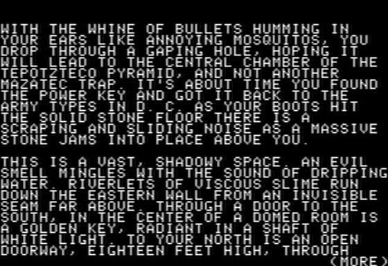 At its core, Indiana Jones in Revenge of the Ancients remains faithful to the golden age of text adventures, relying on a robust parser to interpret your every command. You’ll hack through vines, inspect ancient artifacts, and negotiate with local guides simply by typing verbs and nouns—“EXAMINE CARVING,” “USE WHIP,” and so on. The command recognition is impressively forgiving, picking up on synonyms and context, which spares you the frustration of pixel hunting or guess-the-verb syndrome that plagues weaker entries in the genre.
