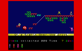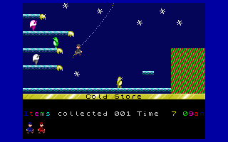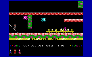 Jet Set Willy picks up where its predecessor, Manic Miner, left off: Willy is now a millionaire miner who has thrown an extravagant party in his sprawling mansion. The plot is delightfully tongue-in-cheek—Maria the housekeeper has decreed that Willy must clean up every room before he can retire to the comfort of his bedroom. This simple premise provides the perfect framing device for the game’s core objective of collecting objects scattered throughout the mansion’s 60+ rooms.