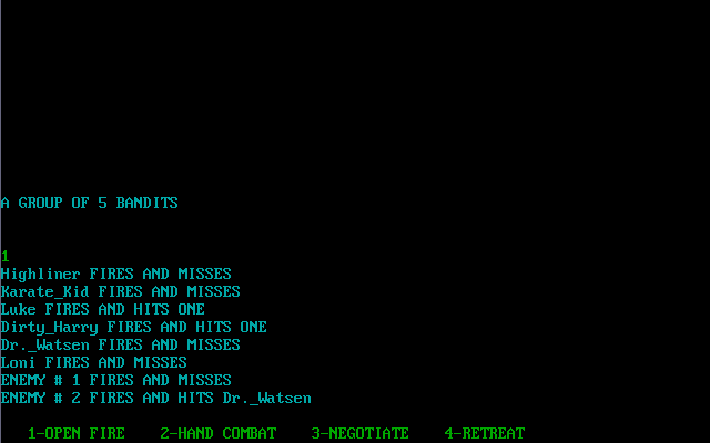 Landing Party’s gameplay is an exercise in strategic decision-making wrapped in a minimalist text-based interface. As the Captain, you guide a handpicked crew of five through a hazardous alien planet in search of precious Energy Crystals. Each turn grants you four actions to allocate among shooting, melee combat, negotiation, or retreat, forcing you to weigh immediate gains against long-term survival. The scarcity of resources and the high stakes of every encounter keep tension high from the first teleport drop to the final escape.