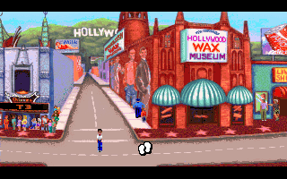 Les Manley in: Lost in L.A. marks a significant shift from its predecessor by embracing a pure point-and-click interface. Gone is the text parser, replaced with an intuitive system that highlights interactive objects with a question mark when you hover your mouse pointer over them. Clicking brings up a straightforward action menu, allowing you to pick from verbs like “use,” “look,” or “talk,” streamlining your interactions and keeping the focus on exploration and puzzle solving.