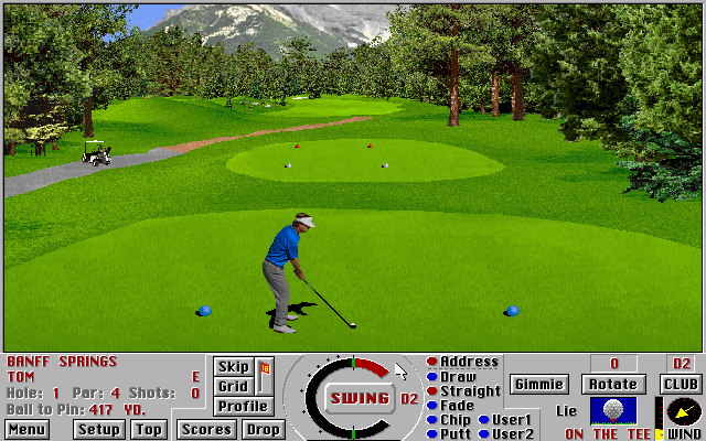 As an add-on to Links, Links 386 Pro or Microsoft Golf, Banff Springs seamlessly integrates with the series’ tried-and-true swing mechanics. From the first tee, you’ll notice how the game engine handles elevation changes and wind variations along the Bow River valley. The familiar three-click swing meter remains intuitive, but the undulating fairways and strategically placed bunkers demand precision beyond what many original courses required. Mistimed swings or misjudged club choices often find your ball nestled in deep traps, echoing the reputation of Banff Springs as a course that punishes inaccuracy.