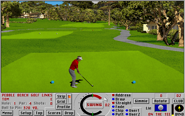 Dynamic weather and cloud layers underscore the atmospheric draw of Pebble Beach. Overcast skies or bright sunshine can dramatically alter visibility and mood, while the ocean’s shimmering surface reacts naturally to in-game wind speed and direction. Even on lower-powered 386 machines, frame rates remain stable, ensuring a smooth, immersive presentation.